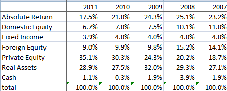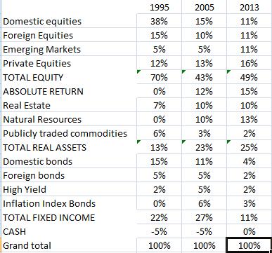 Aside from risk aversion, a second reason why investors are not following Larry Fink toward “100% equities” is that the alternative is not just bonds; they can also buy a panoply of “alternative” investments such as hedge funds and private equity. Portfolio managers can strive for equity-like returns without touching publicly traded stocks. Consider the endowments of Princeton, Harvard, and Yale, which tend to be “thought leaders” in the non-profit world (see tables). They agree with Larry that bonds are overpriced and have on average just 5.9% of assets in fixed income. But their allocation to stocks is also pretty limited, averaging just 21.6%: 16.3% for Princeton (including 7.3% in domestic equity), 33% for Harvard (11% domestic), and 15.7% for Yale (6.7% domestic). Even though these folks hate bonds, only 8% of their assets are in domestic equity. Their big bet is on alternative assets, which claim 72% of total assets, on average.